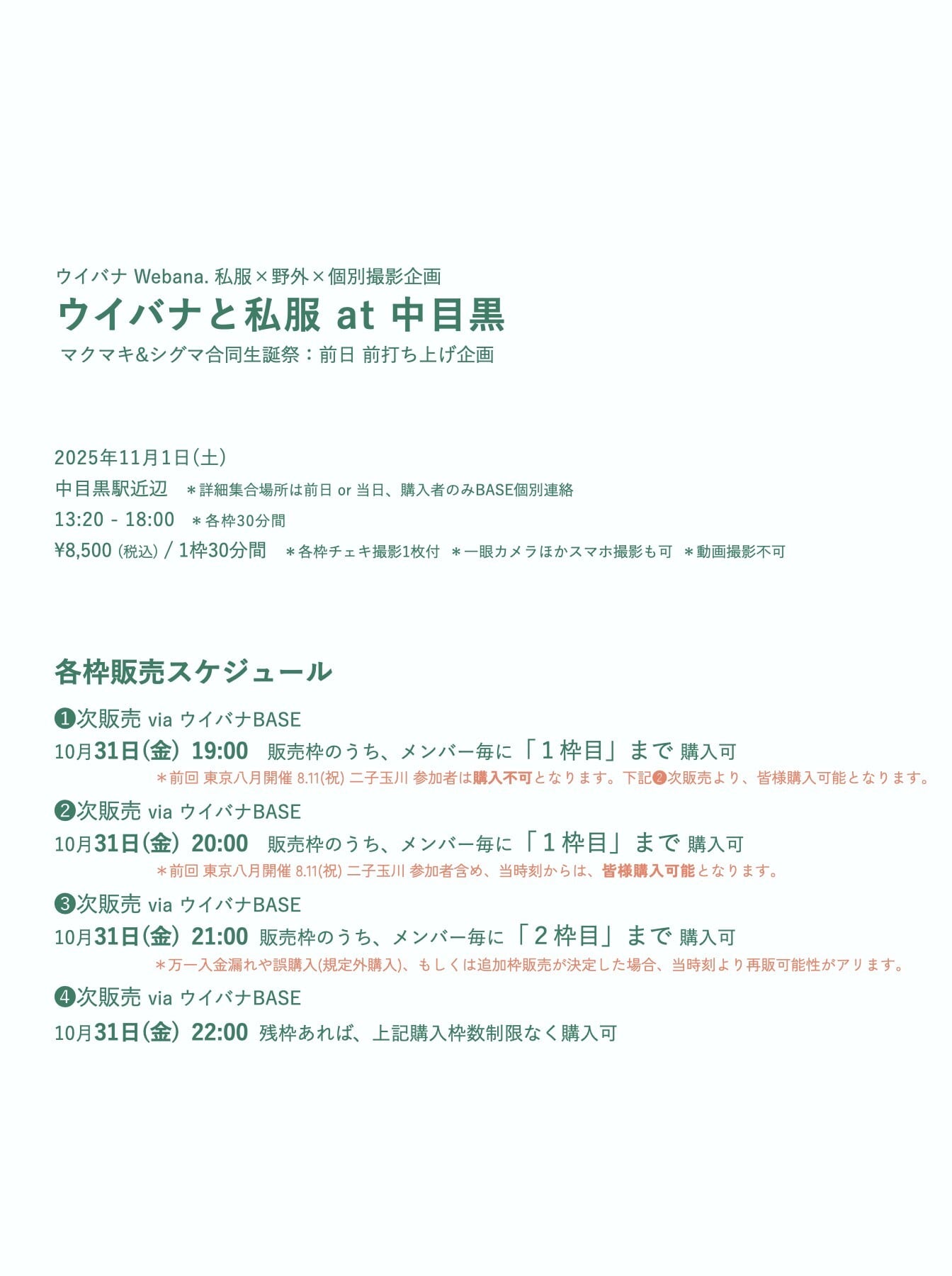 【11.1(土) at 中目黒】マクマキ Makumaki "ウイバナと私服"【私服×野外×個別撮影企画】